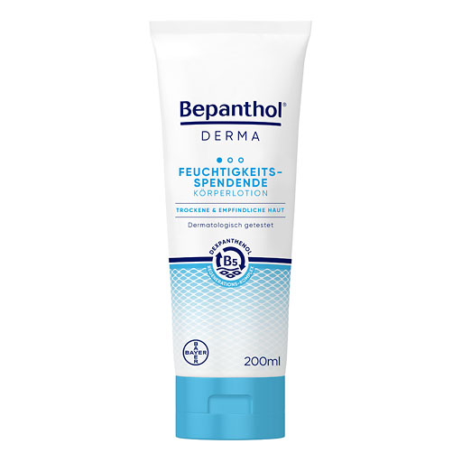 Die Bepanthol® DERMA Feuchtigkeitsspendende Körperlotion ist klinisch geprüft. Die Lotion ist frei von Duft- und Konservierungsstoffen und auch zur Pflege bei Diabetes bestens geeignet. 90 % der Inhaltsstoffe sind natürlichen Ursprungs.