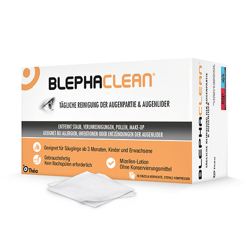 Blephaclean sind einzelnverpackte, sterile Feuchtkompressen zur sanften und effektiven Reinigung der Augenlider und Lidränder. Die feuchtigkeitsspendenden Reinigungstücher sind mit hochwertigen, pflegenden Inhaltsstoffen wie Hyaluronsäure und Pflanzenextrakten angereichert, die entzündungshemmend wirken und die Durchblutung, sowie die Elastizität und Spannkraft der Augenlider verbessern. Frei von Duftstoffen und Konservierungsmitteln! Auch zur Make-Up-Entfernung geeignet.
