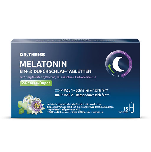 1. Phase (schneller einschlafen): Melatonin kann dazu beitragen, die Einschlafzeit zu verkürzen. Passionsblume und Zitronenmelisse können den Schlaf unterstützen und für Entspannung sorgen.