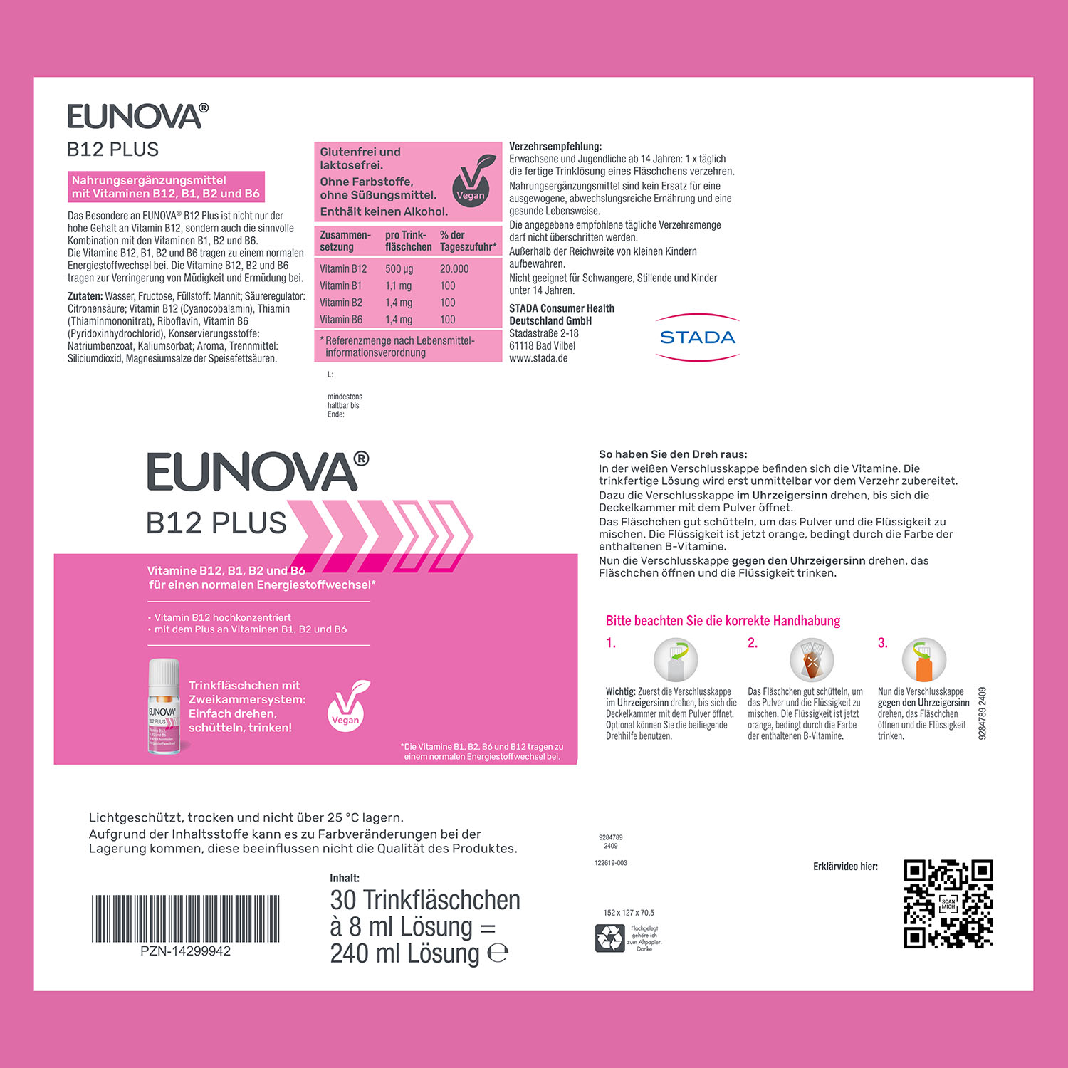 Wir empfehlen nicht mehr als ein Trinkfläschchen EUNOVA® B12 Plus am Tag zu nehmen.