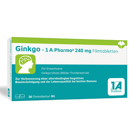 Gut zu wissen: Ginkgo – 1 A Pharma® 240 mg Filmtabletten gibt es auch niedriger dosiert als Ginkgo biloba – 1 A Pharma® 120 mg Filmtabletten.