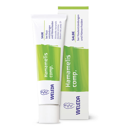 Hamamelis comp. wirkt der Entzündung entgegen und lindert den Juckreiz. Die Wände der Hämorrhoidalvenen werden gestärkt, so dass sie sich wieder in ihre ursprüngliche Form zurückziehen können. Die Wirkstoffe Zaubernuss und Stibium metallicum praeparatum hemmen die Entzündung und unterstützen die Haut bei der Heilung. Nässende Stellen trocknen ab.