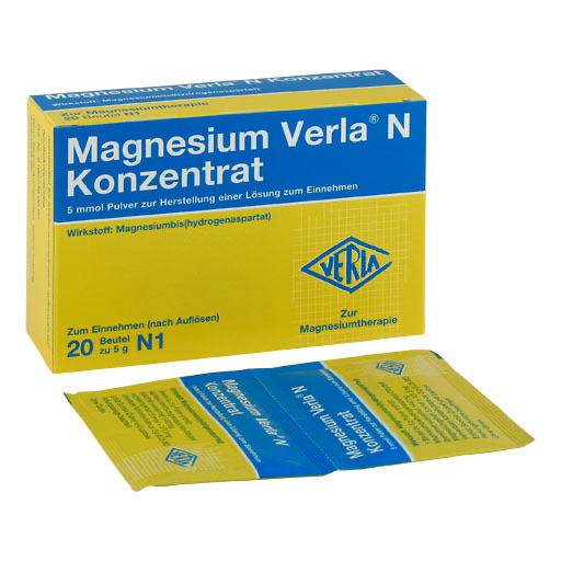 Magnesium Verla® N Konzentrat bewährt sich seit vielen Jahren als Arzneimittel mit höchsten Qualitätsstandards in der Therapie von Magnesiummangelzuständen. Das hochwertige Pulver schmeckt fruchtig nach Mandarine und kann einfach mit Wasser angerührt werden. So wird auch die tägliche Flüssigkeitsaufnahme unterstützt. Das aufgelöste Pulver ist außerdem nicht brausend, eine gute Alternative für alle, die Brausetabletten als unangenehm empfinden. Durch die moderate Dosierung von Magnesium Verla® N Konzentrat ist es individuell gut dosierbar und kann ganz nach Bedarf über den Tag verteilt getrunken werden. Dies erhöht die Bioverfügbarkeit von Magnesium, da kleine Mengen effektiver aufgenommen werden können als große Einmal-Dosen. Zusätzlich wird in Magnesium Verla® N Konzentrat ausschließlich organisches Magnesium für eine gute Aufnahme und Bioverfügbarkeit im Körper verwendet.