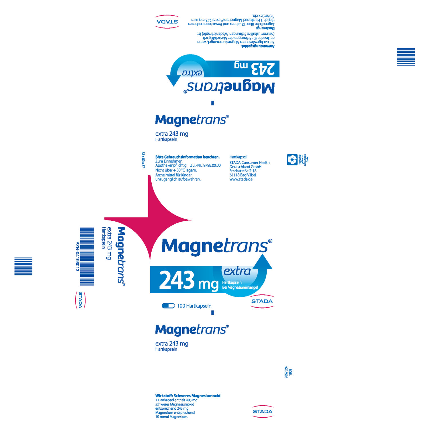 Für eine schnelle Hilfe bei Muskel- und Wadenkrämpfen bei nachgewiesenem Magnesiummangel liefert Magnetrans® extra pro Hartkapsel 403 mg schweres Magnesiumoxid entsprechend 243 mg Magnesium entsprechend 10 mmol Magnesium.