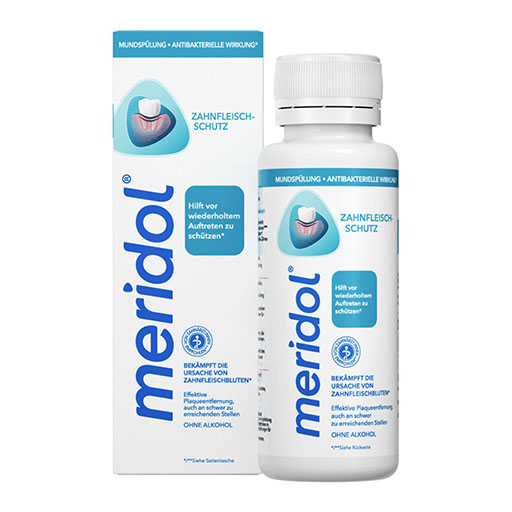 Entscheiden Sie sich für die meridol Mundspülung: Ihre antibakterielle Wirkung bekämpft nicht nur die Symptome von Zahnfleischentzündungen, sondern die Ursache. Die meridol Mundspülung sorgt für gesundes Zahnfleisch und frischen Atem und schützt gleichzeitig vor Zahnfleischentzündungen, Zahnfleischbluten und Zahnfleischrückgang.