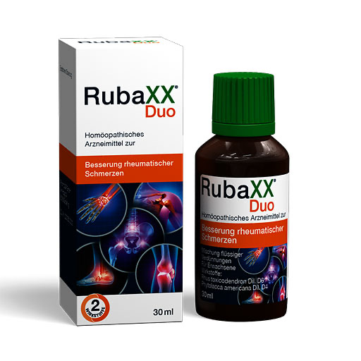 Bei rheumatischen Schmerzen wirkt T. quercifolium schmerzlindernd und Phytolacca americana hat sich aufgrund seiner Wirkung bei entzündungsbedingten Schmerzen bewährt. RubaXX® Duo ist gut verträglich. Daher sind die Arzneitropfen auch für die Anwendung bei chronischen Beschwerden geeignet.