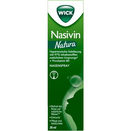 Nasivin® Natura, abschwellendes Nasenspray, ist eine hypertonische Salzlösung die hilft, die Nase auf natürliche Weise (basierend auf dem osmotischen Wirkmechanismus) zu befreien, ProVitamin B5 befeuchtet die Nasenschleimhaut, Menthol, Eukalyptus & Thymian sorgen für einen erfrischenden Duft, abschwellend, ohne Konservierungsstoffe. Außerdem trägt das Nasenspray dazu bei, Viren, Bakterien, Allergene und Verschmutzungen, die über die Luft aufgenommen wurden, zu entfernen. Die Formulierung von Nasivin® Natura befreit die Nase, befeuchtet, pflegt und erfrischt!